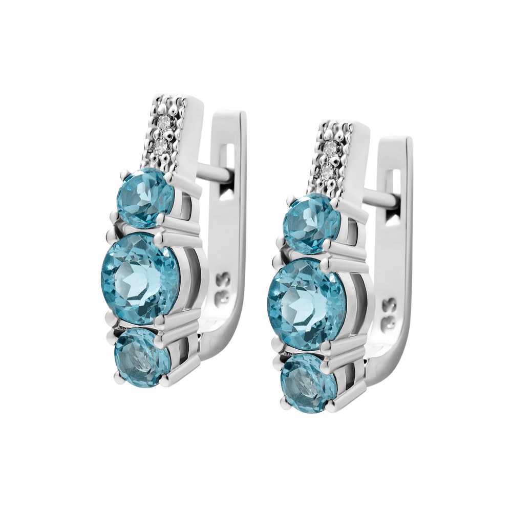 Жіночі срібні сережки зі вставками свiсс топазу i куб. цирконiю