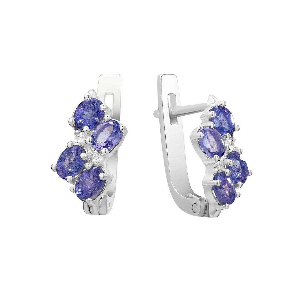 Опис Срібні сережки з танзанітом та фіанітом 070-3510