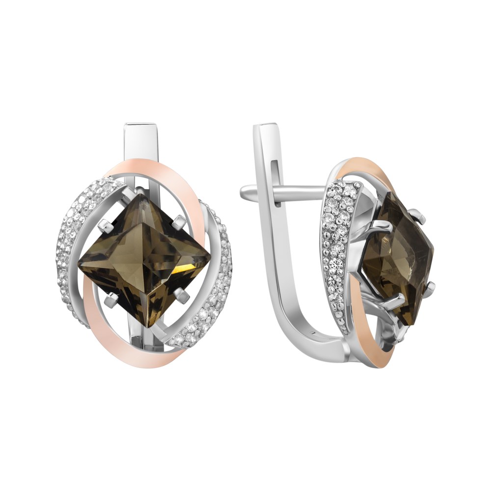Жіночі срібні сережки зі вставками золота і куб. цирконію