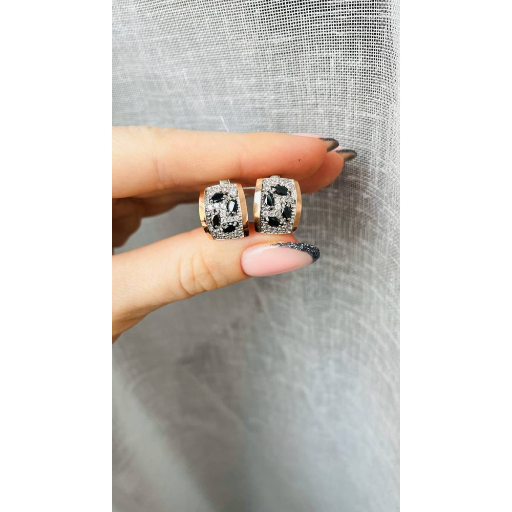 Жіночі срібні сережки зі вставками золота і куб. цирконію