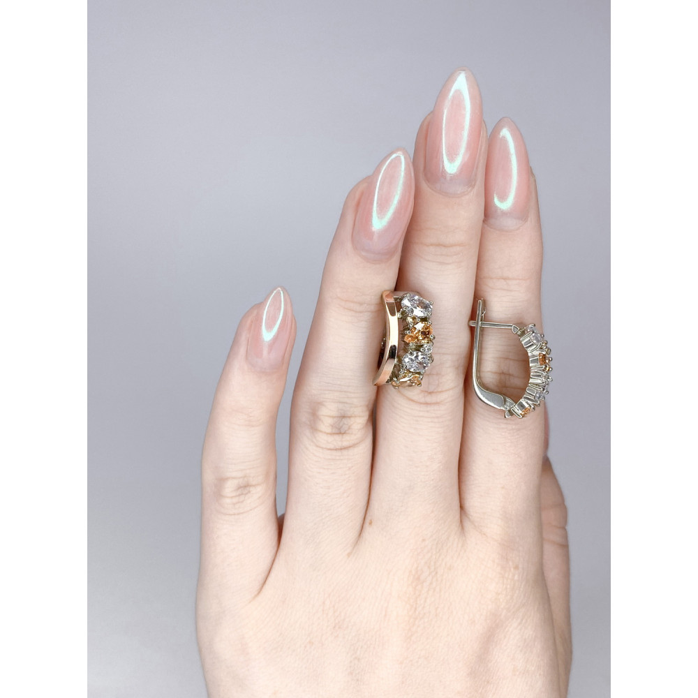 Жіночі срібні сережки зі вставками золота і куб. цирконію