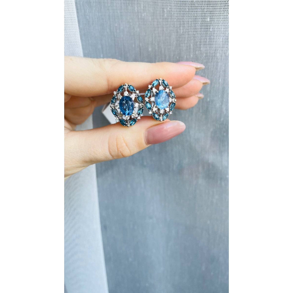 Жіночі срібні сережки зі вставками флюорит блу джон і фіанітами
