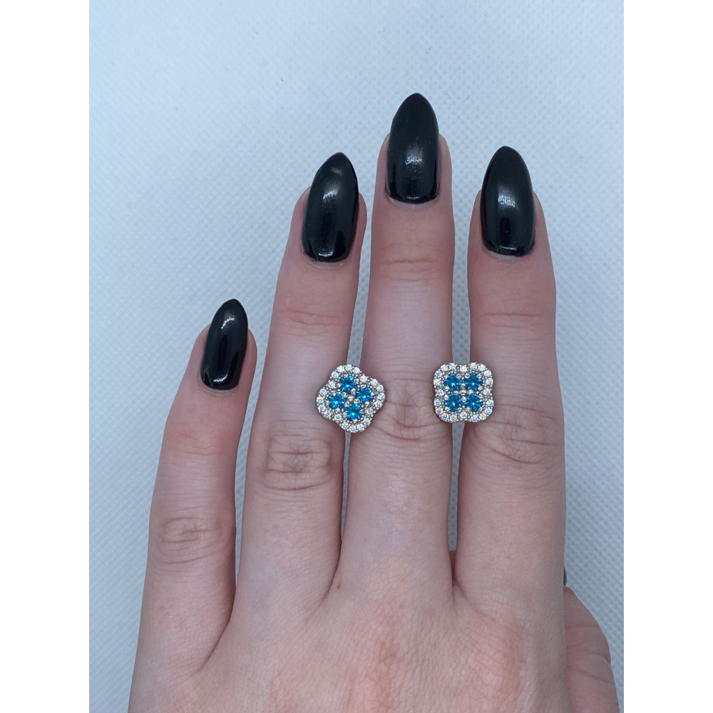 Жіночі срібні сережки зі вставками нано турмалінів і фіанітів