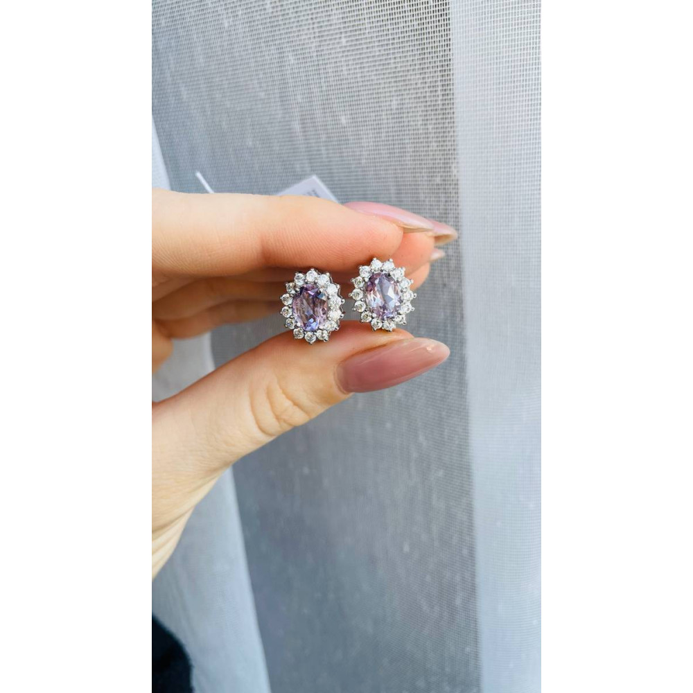 Опис Срібні сережки з рожевим аметистом та фіанітом 012-6310