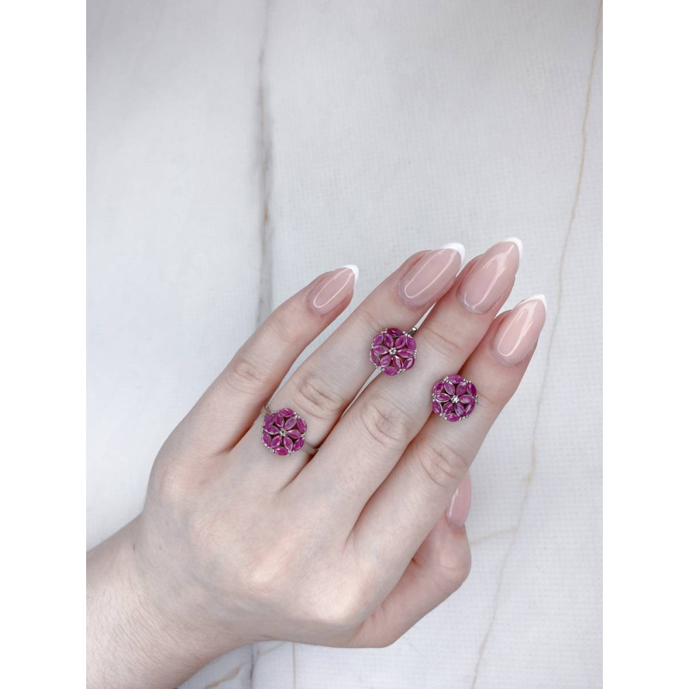 Жіноча срібна каблучка зі вставками рубіну і фіанітів