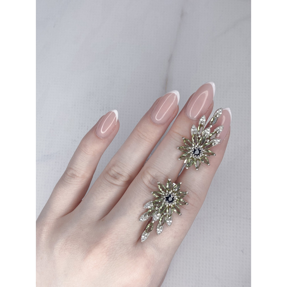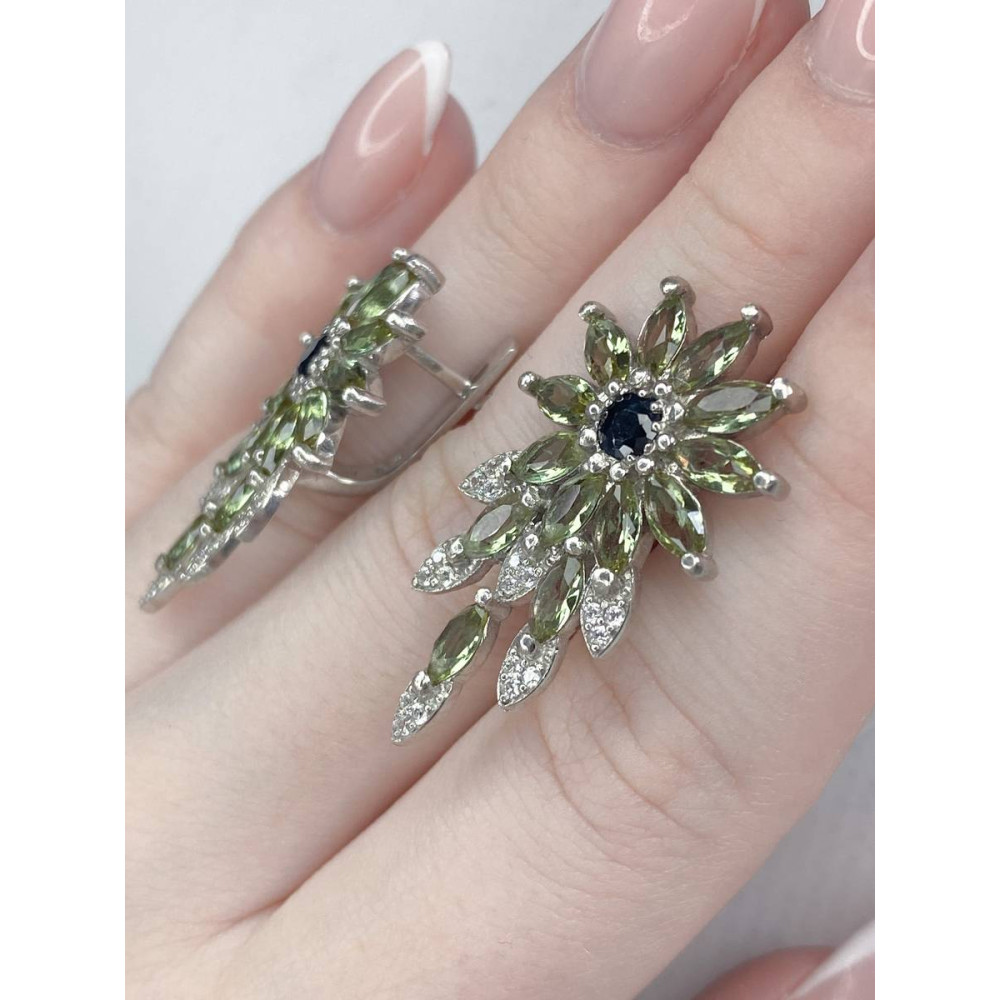 Жіночі срібні сережки зі вставками сапфірів, нано султанітів і фіанітів